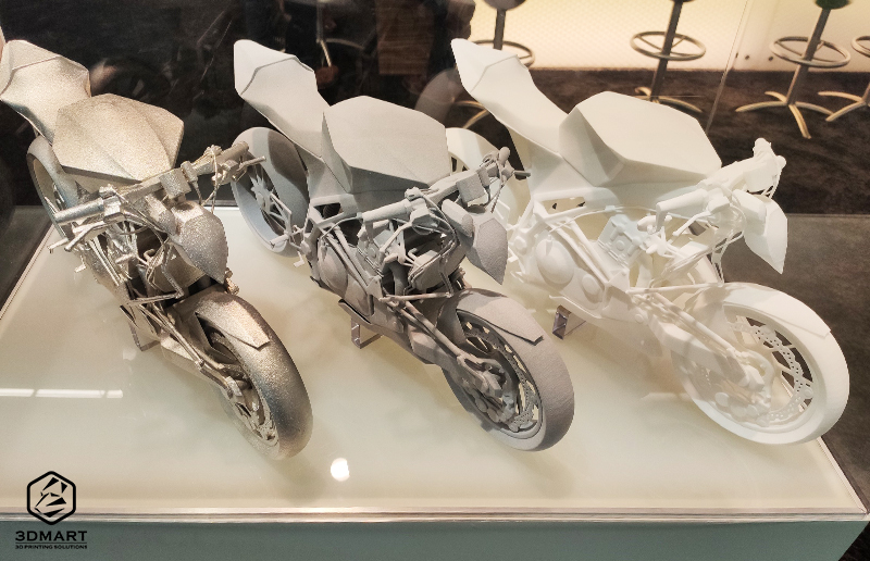 再來是以SLS製作的後處理重機模型,從右到左分別是3D列印、噴補土、金屬漆,視覺效果及細緻度表現(xiàn)良好,連超細的懸空管線也十分完整。