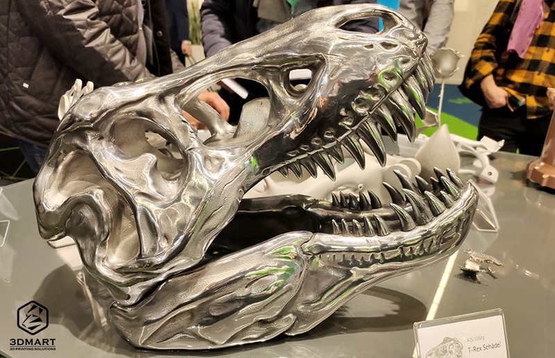閃亮光滑的暴龍頭骨也是由全金屬3D列印打造,製作一顆這樣的全金屬列印大小目前依然價格不低。