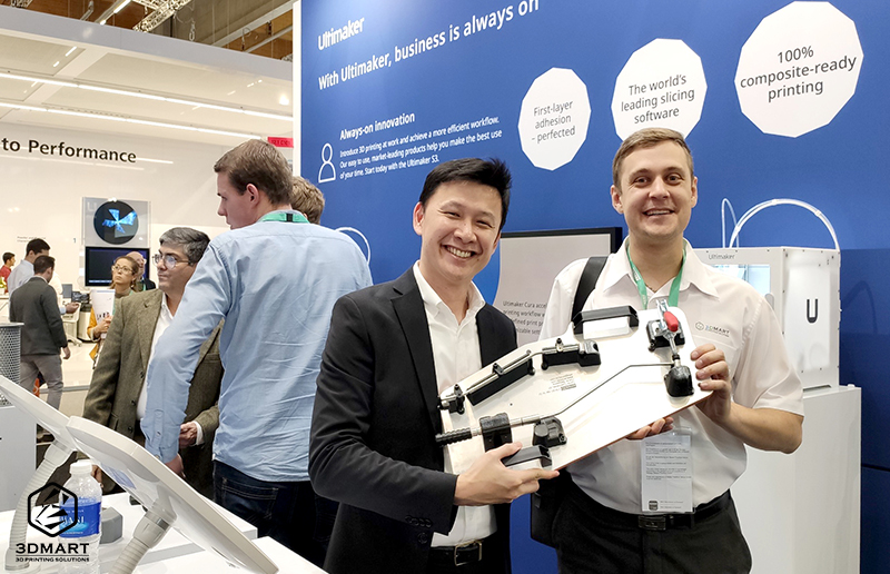 最後當然要到我們的Ultimaker攤位拜訪,Ultimaker人員手上拿的就是近期新的工業(yè)應用案例,展場上也可見許多材料製造商直接使用Ultimaker 3D列印機做開發(fā)測試,三帝瑪身為總代理也與有榮焉。
