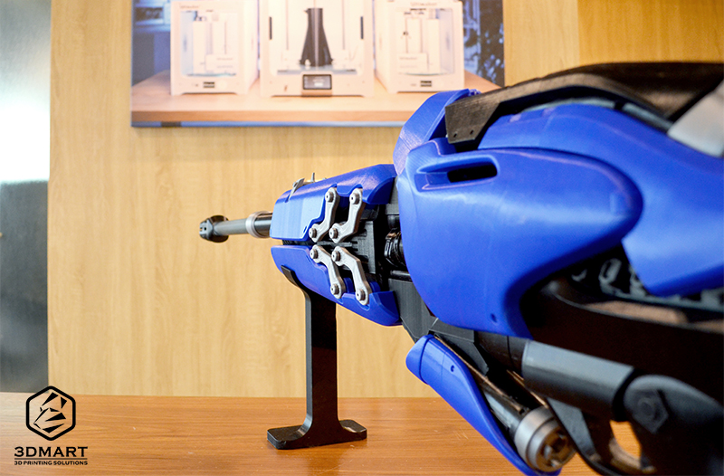 這次的真人版「奪命之吻」最大長度為140公分,需要一個成人用兩隻手才拿得動,採用3D列印各部件再組裝的方式完成。本次使用的3D列印機皆為雙噴頭系統的Ultimaker S5、Ultimaker 3,採用0.15mm的高精度層厚,線材為PLA搭配水溶性支撐PVA進行列印。