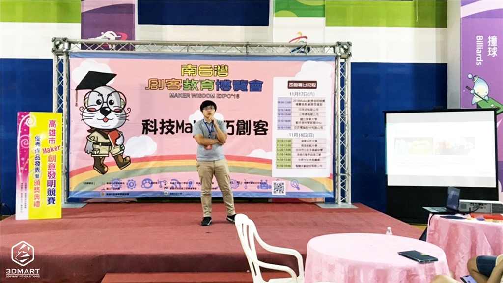 【3D列印展覽】大小朋友不亦樂乎!高雄創(chuàng)客展圓滿落幕! 南臺灣高雄創(chuàng)客展圓滿結(jié)束,現(xiàn)場充滿創(chuàng)意手作和益智科學;大人、小孩都玩得很開心,現(xiàn)在就來回顧當時的盛況!在高雄中正技擊館前就能看到滿滿的迎賓海報,場外的中央舞臺可以看到小朋友的表演節(jié)目,大家都賣力演出。 場內(nèi)也有舞臺發(fā)表的活動,三帝瑪也應邀出席,為大家講解3D列印的技術(shù)和科技,以及曾經(jīng)用於手工製作的案例等。 難得前往高雄展出,因此我們這次申請三個攤位,放上滿滿的展品要讓大家一次看夠三種技術(shù)(延伸閱讀:3種3D列印大比拚)。 不僅如此,連Ultimaker系列3D列印機都帶了兩臺,一臺是Ultimaker S5和Ultimaker 3,並且在現(xiàn)場實際列印贈品。 小編趁尚未開幕才拍到完整擺設的展品照片,剛?cè)雸鼍土⒖逃腥嗽儐?,後續(xù)湧入的小朋友更是好奇心旺盛又熱情活潑!只要是三帝瑪參加的展覽,現(xiàn)場都會派專業(yè)人員為大家做技術(shù)解說。 許多手作攤位都被擠得水洩不通,這次的展覽中有一些小型機器人和遙控運輸機;看得出科技已經(jīng)漸漸走入校園,大人、小孩也都知道3D列印機的基本概念,大家獲得新知的速度遠遠超過兩、三年前三帝瑪在其他展覽中的表現(xiàn)。 很高興這次的創(chuàng)客展圓滿落幕啦!無法到場的大家別傷心,我們未來會持續(xù)規(guī)劃活動與展出;追蹤粉絲專頁就能獲得第一手消息;而本次展場中的3D列印物件也將成為近期的神祕嘉賓,現(xiàn)場已經(jīng)有人搶先看到本尊囉!我們很快又會和大家分享,請各位拭目以待! 追蹤粉絲專頁、抓住3D技術(shù):https://www.facebook.com/m.88778853.com/