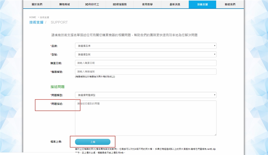 3. 為加速工程師判斷及處理,請在報修表單內附上以下資訊,並可直接上傳檔案: