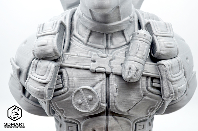 雖然是用一體成形的方式3D列印的成品,但由於細(xì)節(jié)深度非常足夠,視覺效果看起來(lái)像是可以拆卸的配件一樣,胸前的卡扣、頸環(huán)和背帶都非常有立體感。