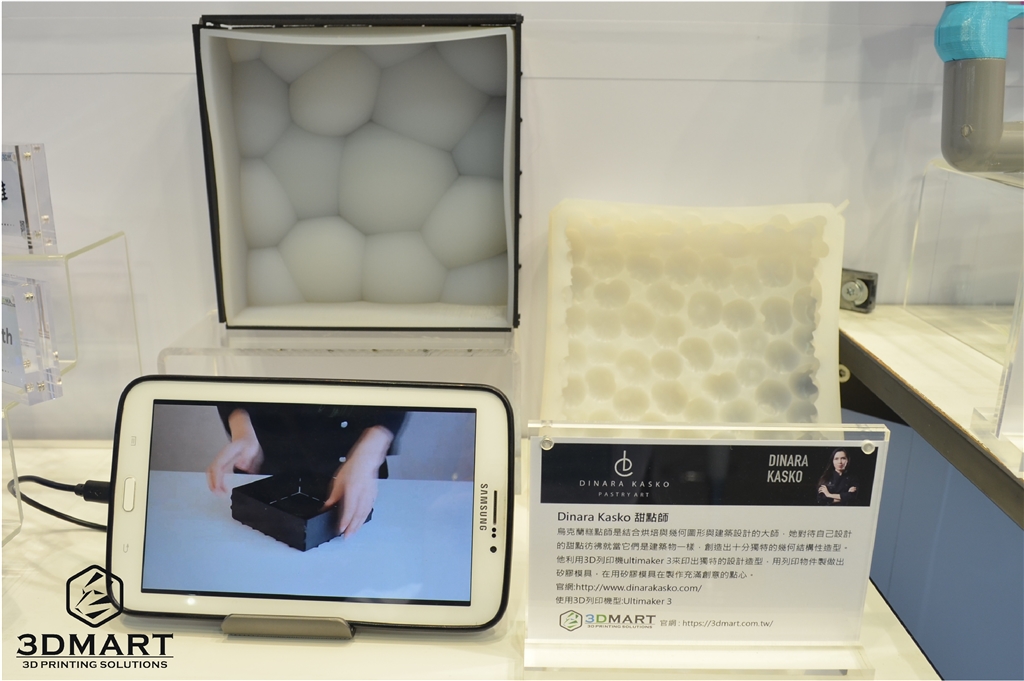這次特別增設的客戶使用ultimaker 3d列印機應用區,來自烏克蘭的點心師藉由3d列印技術做成的蛋糕模型再翻成