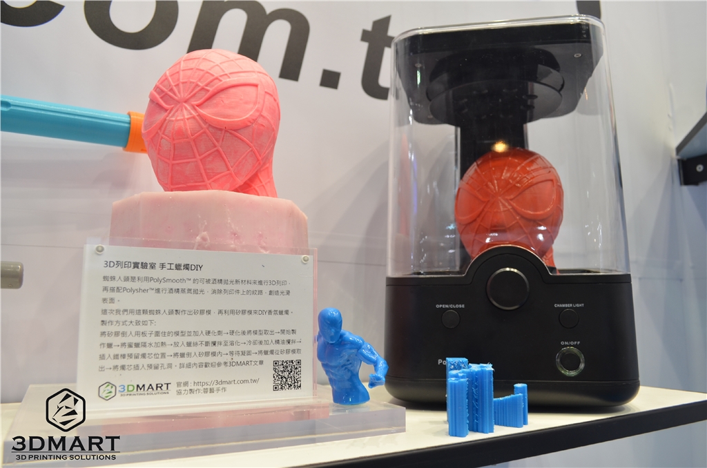 詢問度非常高的Polysher酒精拋光機,大家都十分驚嘆拋光後的效果,現場也展示了蜘蛛人頭經拋光處理後翻矽膠