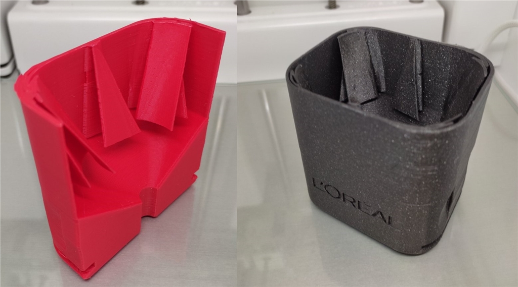 以前,巴黎萊雅製造獨特的部件來保持每個瓶子的形狀。但是每當生產線更改瓶子的形狀時,這些部件都會被拆除並用其他特定瓶子的部件替代。3D列印機可以用來創造通用部件嗎?