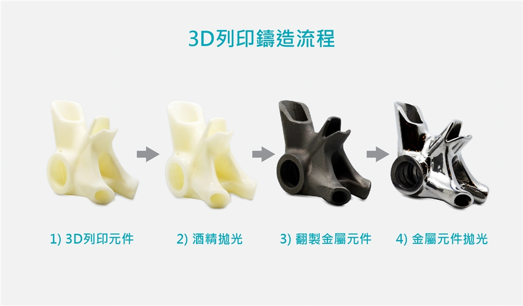 【3D列印鑄造】金屬零件看這裡!3D列印鑄造大集合! 3D列印技術起飛之後,除了FDM、SLS、SLA技術之外,在之前的展覽中可以看到金屬3D列印技術也正在開發中(延伸閱讀:2018 Formnext展覽特派員,3大創新科技帶你看!);由於技術還未普及,金屬3D列印機目前的價格動輒百萬、千萬起跳。 在此價格之外,目前普及的一般3D列印技術經過簡短的轉換過程,能提供品質精良的金屬零件,以下就帶各位由小尺寸到大物件一次看三帝瑪的3D列印鑄造零件大家族! .SLA光固化:珠寶及金工系列 我們先前曾分享過照片中的幾款金工鑄造件,採用DWS XFAB以樹脂進行列印,原件列印完成後再燒熔製作金屬鑄模。 SLA光固化技術的成形特色是光滑的表面和精緻的細節,適合用於小而結構複雜、表面細緻的珠寶飾品。 尤其用於客製化或訂做商品,無須採用昂貴的銑床加工或開模費用;圖中可以看到人物的髮流和花瓣的紋路,我們直接用手當作比例尺進拍攝影。 .完整介紹:有了這個還需要花上百萬買結婚戒指嗎!? .FDM熱熔融層積:工業零件及人物肖像系列 一般人較為熟悉的是採用線材進行3D列印的FDM技術,搭配最新上架的鑄造專用PolyCast線材製作原型,可以快速得到完全燒熔的乾淨膜腔來翻製金屬零件。鑄造專用的PolyCast除了能燒熔以外,也能進行酒精拋光;在進行鑄造之前就能轉為光滑的表面,也不會讓膜腔殘留一般3D列印的堆疊痕跡,是打樣的最佳選擇。 .完整介紹:人物肖像金屬模型 各位可以參考先前的腳踏車零件成品,以及飛機零組件最終的金屬樣品。從3D列印到金屬零件通常會經過四個步驟:3D列印原型、酒精拋光、鑄造原型、金屬拋光,來獲得最完美的金屬成品。 .完整介紹:3D列印腳踏車鑄造零件 .完整介紹:3D列印腳踏車鑄造零件-第二彈 .完整介紹:3D列印飛機鑄造零件 和CNC銑床加工不同的是3D列印採取加法的成型方式,因此能達到部分銑床加工無法直接製作的結構或內彎角度;而兩種技術結合也能相輔相成得到更精細的成品。相較於光固化而言,FDM的成本更具有經濟效益,而且能夠列印更大的物體;例如我們曾示範過的3D列印1:1煞車卡鉗,總尺寸約為:25.5mm x 16.5mm x 78.5mm,當然還能夠列印比這更大的零件。 .完整介紹:親測能用!煞車卡鉗金屬鑄模成品出爐! 除了這些樣品以外,也可以一起看看國外的金屬製模公司Sylatech,將此技術用於脫蠟鑄造的應用案例;圖為使用於金屬螺旋槳成型的最終完成品。 .應用案例:Sylatech公司的應用案例 如果對PolyCast轉鑄造的工廠實錄有興趣,也可以參考這裡的影片!如果還未擁有3D列印機,我們也提供3D列印代工後轉鑄造的服務;若是已經有想法也有機器,目前PolyCast已經公開販售,在我們的購物商城就能買到! 追蹤粉絲專頁、抓住3D技術:https://www.facebook.com/m.88778853.com/