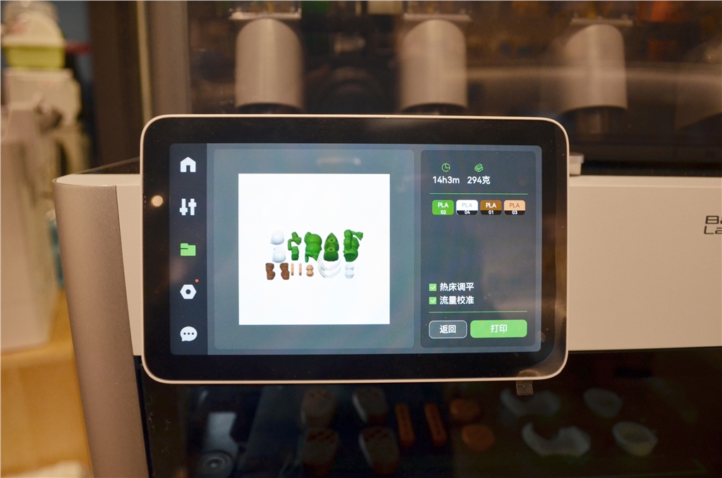 觸控螢幕右側有SD卡槽可以插入SD卡,觸控螢幕可預覽要列印物件的縮圖,與預計列印時間和多少公克數。