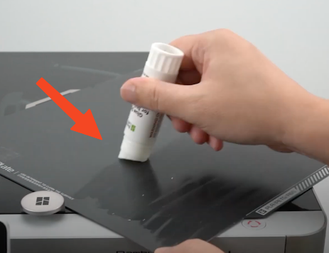 將列印板取下,使用原廠提供的熱床固體膠,塗上薄薄一層,再放回去對齊位置即可。