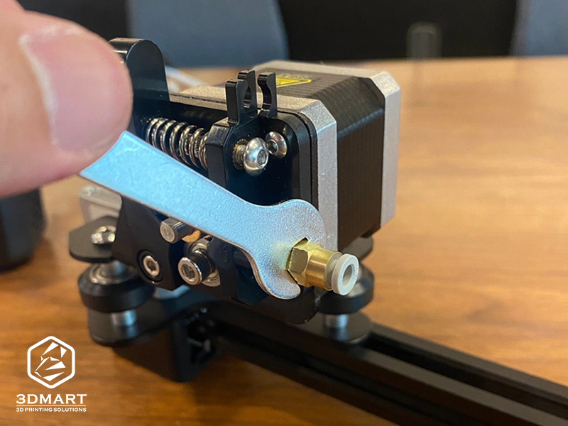 使用平圓頭螺釘M5X8、M5T型螺母,將3D列印線材架安裝於軸桿上。