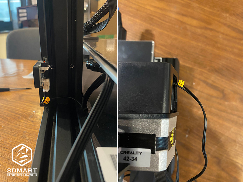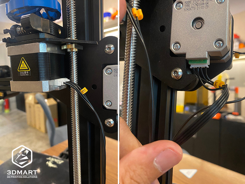 依照6pin(四根線)端口上的黃色標籤指示,連接X、E、Z軸接線插入電機零件中。