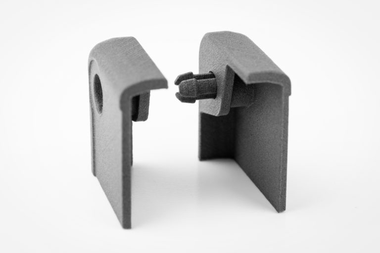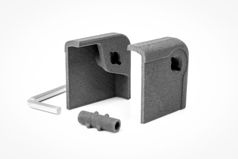 和上圖相比,此款設計的不同之處在於膨脹螺絲相對組件而言個別獨立,優點是可以在組合零件之後仍可用鑽孔或拆卸的方式將螺絲單獨移除。塑膠射出是大量生產時的常見方法,不過SLS 3D列印技術不但在開發階段可以了解產品造型,更能直接用於功能更複雜的零組件測試,因為Sinterit的雷射粉末技術對樣品原型的結構幾乎沒有任何限制。(什麼是SLS 3D列印技術?新手入門:常見3D列印技術比較及原理)