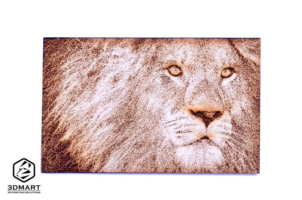 使用FLUX beambox雷射雕刻的獅王,不論是眼神、濃密毛髮、臉部輪廓,都有高精度、明暗對比,只需20分鐘即可完成;完成的木板表面也能看到、摸到細緻的雕刻紋路,桌上型尺寸也能做到工業級雕刻效果。
