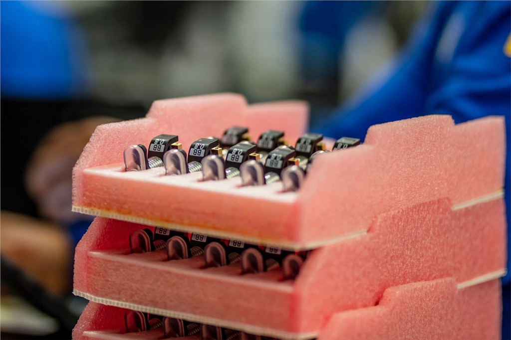 泡棉隔層會按照組裝的順序堆疊在箱子裡,最上層的零件必須在下一層開始之前全部安裝到3D列印機內,以維持產線順暢。