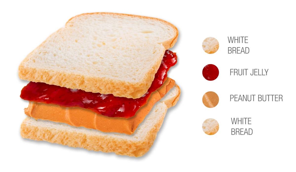 (美式經(jīng)典花生果醬三明治,在北美地區(qū)相當普遍,可以說是美國的經(jīng)典食品。)