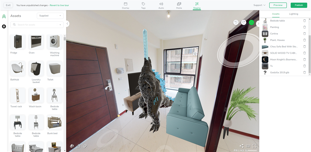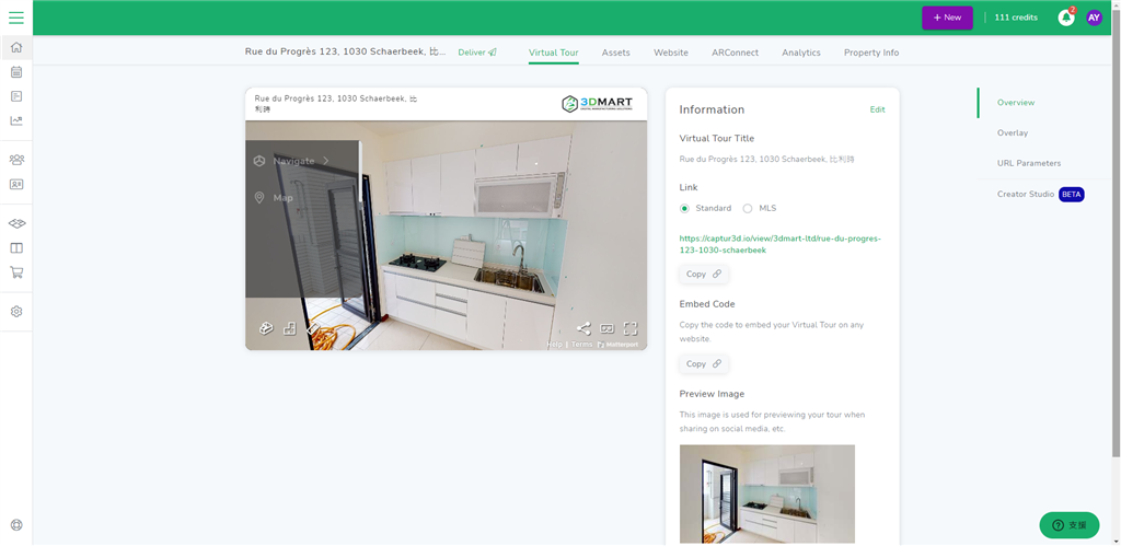 Matterport建立好3D環(huán)景空間,複製連結(jié)到此處,即可開始進行編輯。
