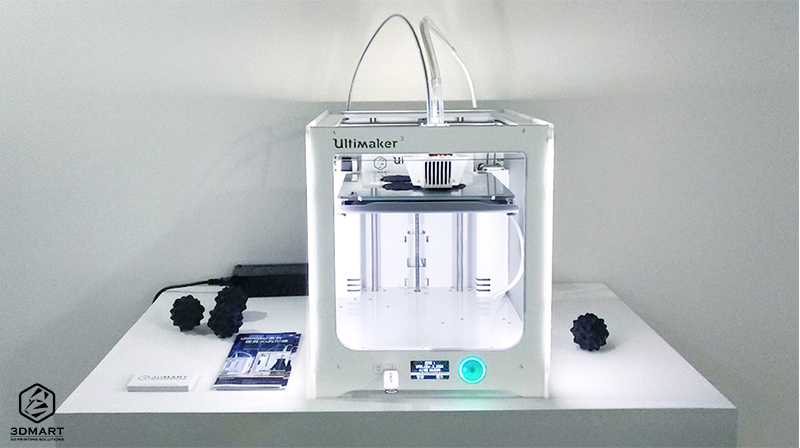 展場上共坐落四臺Ultimaker 3D列印機並處處可見黑色的反應粒子,並且可以拿起來觀看、把玩,而3D列印機作為互動展示的一環全程都馬不停蹄的進行生產,許多同學和來賓也好奇的圍觀。