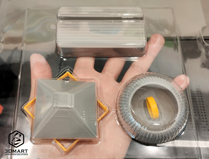 我們初步嘗試的結果非常成功,材料片完美包覆四面體的周圍,並如影片中看到的不同材料有不同用途,可以製作肥皂或巧克力、食品模具…等。(延伸閱讀:工藝巧克力專賣店:食品模具不求人!)