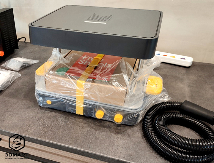 打開箱子以後會看到完整的保麗龍包裝,將保麗龍拆開後除了FormBox 真空成型機本體以外還有許多和束帶綁在一起的配件和一條黑色連接管,現在就一一為大家介紹吧!