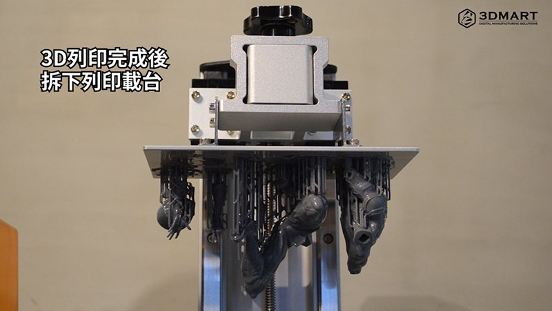 光固化3D列印完成後,模型表面會佈滿樹脂液體,這次使用WANHAO BOXMAN-1紫外線UV後固化燈,針對模型進行固化處理,並拆解模型支撐結構。