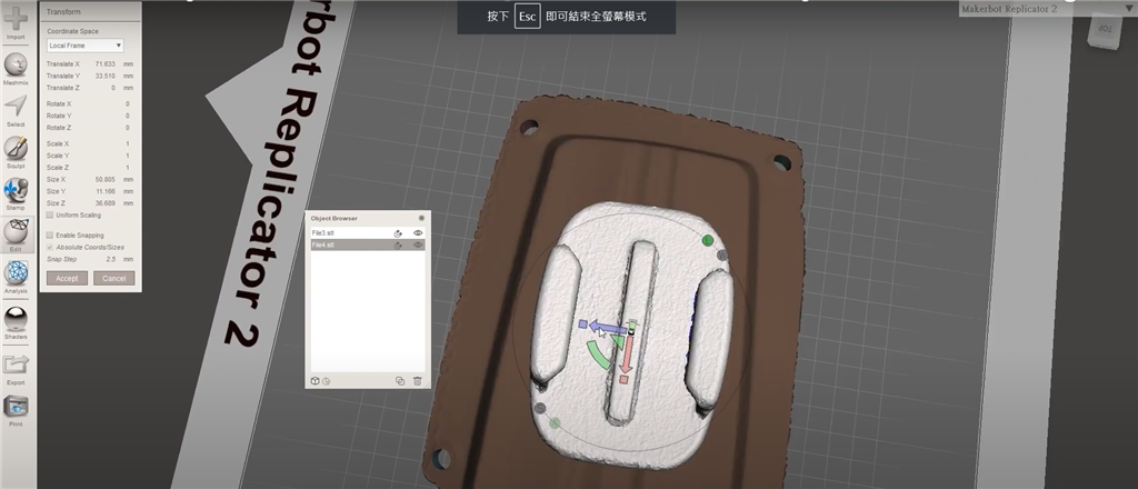 再透過Autodesk Meshmixer 將安全帽頂部配件與Gopro底座合成