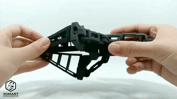 【3D列印應用】Sinterit複合材質新印品,結構可動超靈活! 三帝瑪曾經分享過三種技術的新手入門(延伸閱讀:3種常見3D列印技術總整理),大家已經知道Sinterit的SLS雷射粉末燒結技術不需要支撐材料,適合用於複雜的鏤空及機械結構;我們這次就要為大家分享Sinterit的最新3D列印樣品,先來看一下它的動態表現: 這個有點像外星生物的SLS活動式3D列印夾具僅結合兩個部分:硬質結構和軟料尖端。 硬質結構為PA12粉末列印製作,成品特性為堅硬且具有良好的機械強度和耐熱性;軟料尖端使用的是Flexa Black彈性黑色粉末,屬於TPU聚合物、具有彈性並且耐化學腐蝕性,除了工業用的機械結構,在時尚產業也有開發應用。(延伸閱讀:3D列印時尚為南非小姐錦上添花) 圖中可以看到,構成活動式結構的部分為中心彈簧、雙邊壓扣按鈕、閉合式拉環;藉由下壓按鈕的方式牽動內部彈簧,讓尖端夾具開合運動。 多虧SLS 3D列印技術無需支撐的成形方式,這些物件可以在單次3D列印中一體成形,讓封閉型零件也完全無需膠合及另外組裝。 我們額外列印中心彈簧讓大家看看中央的彈簧結構的材料特性與強韌度,需要比較大的力道才能按壓,回彈力十足。 此外我們也近拍樣品細節,讓各位可以看到Sinterit列印的成品通常沒有明顯的層積紋理,而是帶有霧面或磨砂的表面質感。 Sinterit最新的3D列印樣品已經在上次的分享會中和大家搶先接觸(延伸閱讀:3D列印技術分享會,超多知識通通學!),上次沒能報名成功的各位也歡迎來電預約看樣品或諮詢Sinterit列印機的更多應用範疇。 追蹤粉絲頁、消息不漏接:https://www.facebook.com/m.88778853.com/