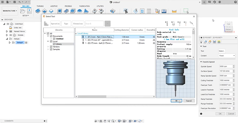 根據所使用的刀頭導入相應的檔案(Tool Library>Local>Library>Import Tool Library)