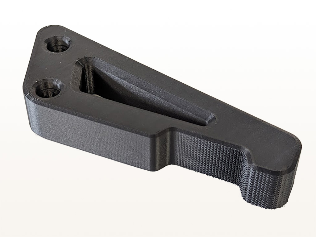 這個簡單的支架得益於 3D 列印的定製能力和快速列印時間,以及碳纖維覆合材料所提供的強度和剛度。