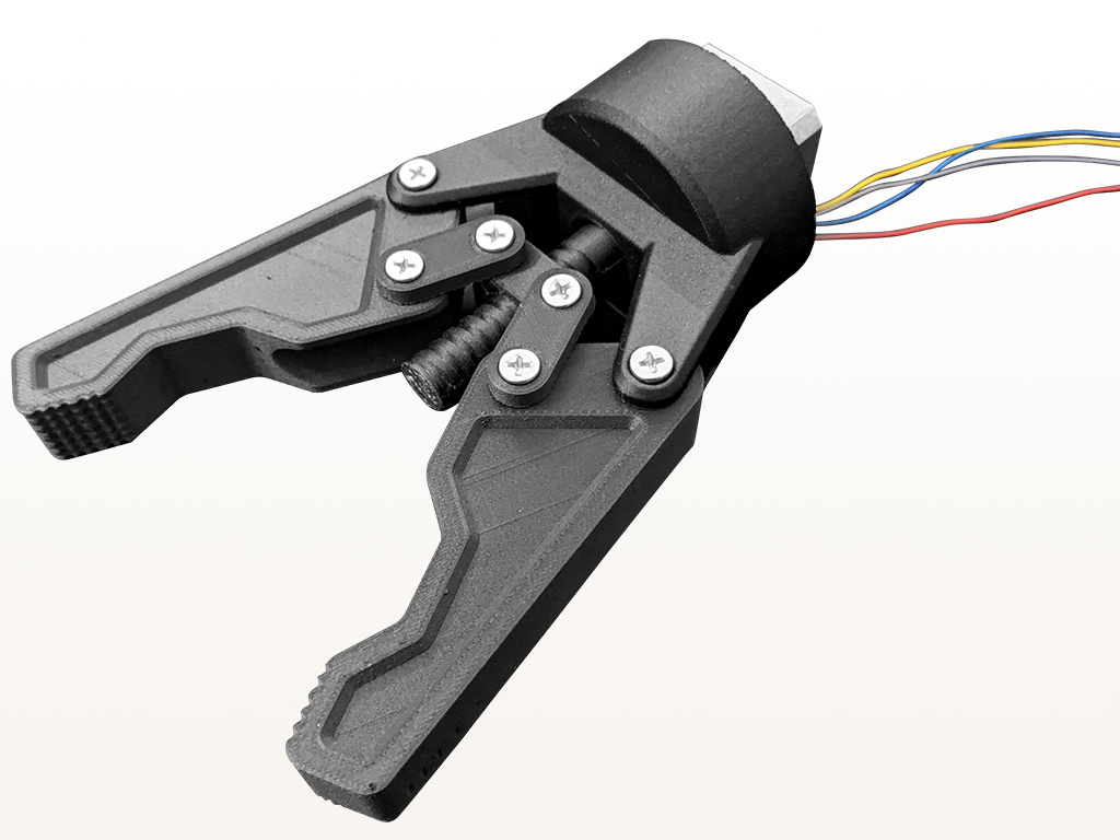 對於真正輕質的末端工具,不是列印單一個零件就夠了,當然要同時列印整個組件。展示碳纖維不僅可以提供所需的強度和耐久性,還可以提供製造複雜移動零件組合所需的準確度,從而提高機械臂的速度和機動性。