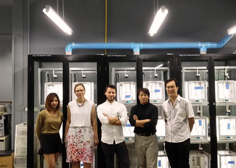 【3D列印快訊】用3D列印增加泰國教育潛力 作為泰國最古老的大學之一,Kasetsart大學的建築系具有良好的聲譽,提供從學士到博士的專業學位。 在建築研究中,使用高質量物理概念模型展示想法的能力是設計過程中的重要部分,3D列印是以能使用 最少的勞動力來提供高質量結果的有效方法。 建築部高年級講師Siradech Surit解釋,學生以前曾從事過基礎設備和傳統的建築模型製作工作,但部門 裡有六百名學生,被證明是耗時和勞動密集型的。 此外,手作方式的模型往往無法充分發揮一個概念。 建築系需要一種低成本,可擴展的快速原型解決方案,以同時滿足使用者的需求。 Ultimaker泰國當地的服務夥伴與Septillion密切合作,該系所配置了十七臺Ultimaker 2+ 3D列印機。 Ultimaker 2+機器被選中,是因為它們完全滿足了系所的需求,在準確性、可靠性和易用性方面都具有良好的聲譽。 該系所群組解決方案不僅具有創造性和可擴展性,而且具有成本效益,使用易於使用的低成本硬體和零件來實現。 不包括列印機,整個安裝費用為55,000泰銖(1,654.11美元),並在三天內完成運作。 Ultimaker的服務合作夥伴Septillion通過每一步完成安裝 使用Ultimaker機器和一些標準硬體,列印群組能在三天內設定好。 使用Ultimaker 3D列印機可以讓我們充分了解和理解每個學生的想法。他們消耗更少的時間 ,更重要的是它們可以幫助我們達成最大的學習潛力。-Sirasch Surit,Kasetsart大學建築系 從概念到現實 該群組是Kasetsart大學數位原型實驗室的一部分。每臺機器安裝在由鋁製T形框架製成的架上。使用單板電腦,可以 遠端管理和監控每臺列印機。安裝在3D列印臂上的售後網路攝影是每臺列印機的前端延伸,使每個用戶能夠遠端監 控指定機器的面板。每個使用者都可以上傳模型列印,不需離開辦公桌就可以控制列印機。 可以從這裡看安裝過程的影片 環境挑戰 像是PLA等材料會吸收周圍的濕度,如果暴露在泰國的潮濕環境下會快速過期。 該系所通過實施環境控制系統克服了這個困難,不僅可以去除環境濕度,保持原始列印材料處於可用狀態,並能清 除列印機的煙霧。 而且這是使用標準的,隨時可用的硬體建立的。 改進工作流程 在目前的配置中,群組可以同時處理17個使用者,每個列印機可以使用預訂系統進行指定。 如果該系所未來希望擴增群組,最簡單的方式就是使用網絡攝影機、單板電腦安裝在每個列印機上,然後將機器整合 到核心軟體中。 該群組使系所能夠在工作時間之外舉辦社區活動,讓愛好者能夠接觸此技術。該系所每個月的第二個星期六舉辦多達 十五人的培訓班。 該群組主要是為了教育目的,不僅是建築學研究,也有建 任何人都可以使用該群組,只要它是用於教育目的。 築物理學研究和參數模型研究。 推動創新 Septillion是Ultimaker廣泛全球服務合作夥伴網路的一部分。每個服務合作夥伴都經過Ultimaker總部團隊完整的認 證和培訓,以確保對所有客戶的都有最好的協助,無論他們是在世界的哪裡。 對於像Kasetsart大學這種需要創新解決方案的教育機構,Septillion可以從每個步驟給予協助,從確定適合他們需求 的產品,一直到交機、安裝和後續保養技術的協助。 Ultimaker泰國服務合作夥伴Septillion的團隊成員。 若你對3D列印故事有任何興趣歡迎持續關注我們的網站 文章來源:https://ultimaker.com/en/stories/50789-increasing-educational-potential-in-thailand-using-3d-printing
