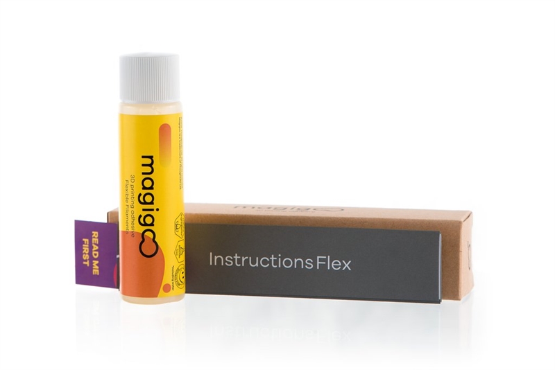 Magigoo Pro Flex專為專業用途而設計,能與TPU(熱塑性聚氨酯)、TPE(熱塑性彈性體)和TPC(熱塑性共聚酯)線材一起使用;將Magigoo Pro Flex塗抹於工作平臺,可實現良好的附著力,冷卻後會相對容易移除,並且能輕鬆去除殘膠。