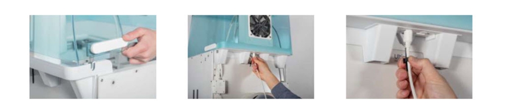 11.將濾淨管家(Air Manager)電線放置線軸支架的右側,並將它插入Ultimaker S5背面的UMB OUT的接孔。
