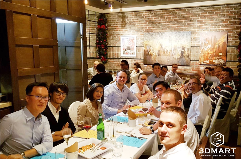 【3D列印快訊】2017 Ultimaker 全球研討會at香港 上週的11月28-29日3DMART臺灣與香港區(qū)代表前往香港參加了Ultimaker的研討會,來自各國的經(jīng)銷商代表皆 出席了此次研討會一同了解Ultimaker未來即將發(fā)布的資訊。 密集的研討會流程,讓大家十分充實的吸收新消息與了解Ultimaker的未來方向。 會議結(jié)束後當(dāng)然要與全球的Ultimaker代表一同飽餐一頓囉! 享受美食的同時不忘與大家聊天分享3D列印的趨勢與討論3D列印的技術(shù),更了解到Ultimaker3D列印機的優(yōu)勢。 最後結(jié)束來了張大合照,各位能不能找到我們3DMART的代表呢(臺灣同事2位和香港同事1位)? 謝謝大家對3DMART的支持與喜愛 未來將持續(xù)以最快的速度提供原廠的最新消息資訊,以及最專業(yè)的品質(zhì)為各位提供服務(wù),網(wǎng)站上也會不間斷的撰寫 3D列印技術(shù)的相關(guān)文章,讓大家更加了解3D列印以及應(yīng)用方式。 當(dāng)然也歡迎對3D列印感興趣的朋友預(yù)約到3DMART現(xiàn)場了解3D列印機與列印樣品。