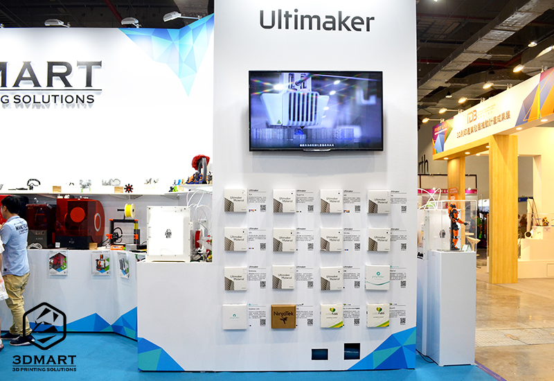 這次展場(chǎng)的佈置上我們也加入了Ultimaker的線材牆,除了上面都有重點(diǎn)說(shuō)明外;掃描不同線材的QRcode都有更詳細(xì)規(guī)格及資料,是不是非常方便!還有觀眾特地跑來(lái)告訴我們非常喜歡這個(gè)設(shè)計(jì),想要什麼一目了然,歡迎參考。(延伸閱讀:3D列印線材比較指南)