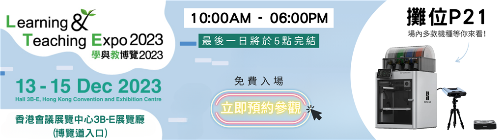 2023-12-11 【3D列印展覽】2023學與教博覽展,立即免費預約參觀!