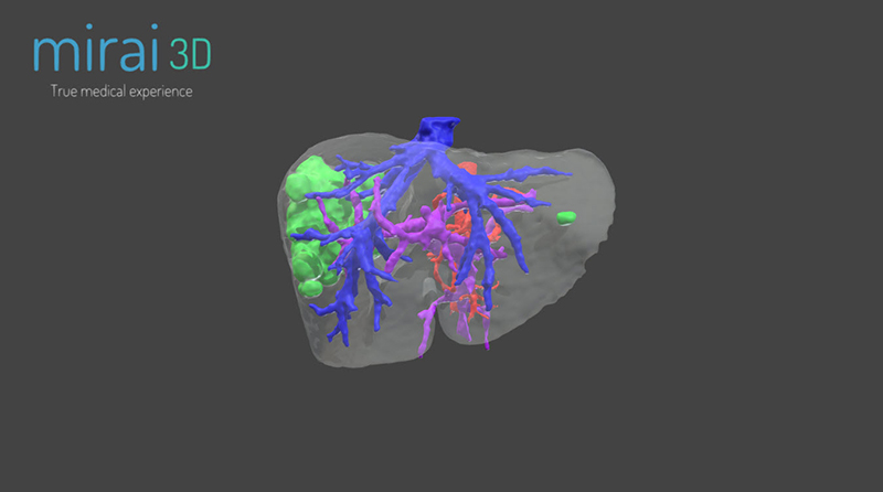 Mirai3D團(tuán)隊(duì)使用進(jìn)行雙色3D列印,製作肝臟、肝血管、腫瘤位置的模擬模型,醫(yī)生團(tuán)隊(duì)在進(jìn)行手術(shù)前,研究腫瘤和肝臟之間可能會(huì)產(chǎn)生的各種問(wèn)題,了解血管結(jié)構(gòu)後,得到最準(zhǔn)確的參考。