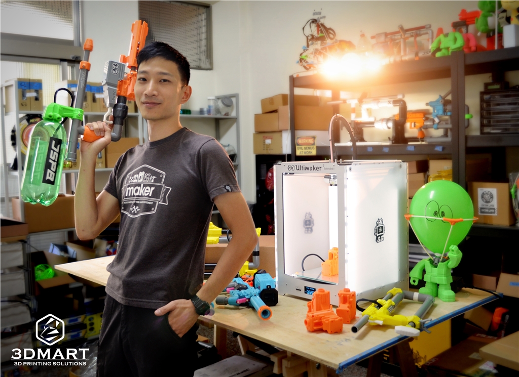 【3D列印應用】JSPB - 3D列印噴射管槍 三帝瑪這次非常榮幸獨家採訪到風靡於美國的臺灣軟彈槍製造商-JSPB,JSPB是JET STREAM PLASTIC BLASTER 的縮寫,又稱為發射泡棉子彈, JSPB軟彈槍系列從設計到生產都在臺灣完成,並以材料包的方式行銷到全球,可說是另類的臺灣之光。 JSPB的產品皆為自行開發、設計、並使用Ultimaker 3d列印機製造的噴射管槍玩具材料包,於網路上進行販售, 多數客戶來自美國,和Nerf軟彈槍社群的玩家,以熱愛改裝的社會人士居多。 目前最受歡迎的產品是JSPB B&B MINIHOPPER、JSPB PRO2、JSPB EXTRA LIVES JSPB B&B MINIHOPPER : 利用3D列印結合水管的泡棉子彈發射器,是入門的DIY材料包 JSPB PRO2 : 更大型與更多的 3D列印件組件的發射器,適合進階玩家使用,可精準射擊配有三條戰術軌道 JSPB EXTRA LIVES : 額外生命套件是用來舉辦活動、比賽的生命感應裝置 ,是可固定於手臂上放置氣球的基座, 氣球只要稍微受到撞擊就會擠壓到底座的尖點立刻爆破 JSPB設計的噴射管槍系列 (左: JSPB Pro2 中間: JSPB B&B MINIHOPPER 右: JSPB EXTRA LIVES與底座) 設計歷程 JSPB創辦人林連詣因為本身相當喜歡射擊運動,也喜歡自己動手DIY,於是結合這兩項,設計出軟彈槍發射器DIY材 料包。 軟彈槍十分安全,因為發射的子彈是泡棉,在室內不會造成破壞性,以前在還沒有3D列印機製作之前必須採用傳統 的技術,利用線鋸機切割木頭來製作連接水管的零件,不僅需要大型機器也需要人力去操作。 JSPB採用3D列印技術能幫助進行更加大膽的設計,結合水管的3D列印配件必須考量到許多機構上的設計,在約一年 的時間當中透過不斷進行研究與 修正,直到滿意為止再進入下個量產階段,不會因此而花費過多成本,也免除在大量生產時會有的囤貨風險。 JSPB獨家設計的JSPB PRO2軟彈槍 Ultimaker 2Extended+正在列印(長槍管) 當初在選擇3d列印機時考量到故障排除與後續維修比較方便的Ultimaker2,Ultimaker在保固內若有故障都可以 免費更換零件,保固過後零件也可以自行更換,特別是喜歡噴頭能夠更換這點,提供更多使用上的靈活度,以及 Ultimaker列印機列印出的部件品質都相當穩定與精準。 目前JSPB總共使用4臺Ultimaker 的3d列印機,它們可以同時運作,列印出各種不同的零件,圖為3臺正在列印的狀態。 JSPB未來發展 目前JSPB的商品主要是以海外(美國)銷售為主,在臺灣需要搭配教學活動,繪製自己的瞄準器,最後列印出來,將 自己完成的作品帶回家的體驗活 動,因此之後會在教學這塊多加琢磨。 未來也會提供更多免費與付費的數位的產品(3D模型檔案)供下載,讓海外的消費者可以省掉運費,在家裡就可以自 己列印,目前也正在開發免螺絲免彈簧的全3D列印的模型配件。 看完文章還覺得意猶未盡,想了解更多關於軟彈槍的資訊,可以到JSPB官網 http://www.jspb3d.com了解更多, 裡面有更多製作的教學文章以及相關活動。 JSPB官網 http://www.jspb3d.com/ JSPB選擇的優質Ultimaker3D列印機: Ultimaker 2Extended+和Ultimaker 2,可以幫助你實現更多創新的想法。