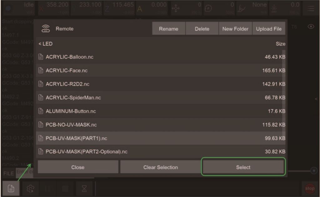 4. 打開遠端目錄下的Root->Examples->LED Folder,選擇加工文件。
