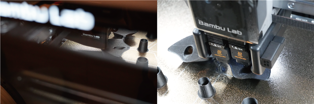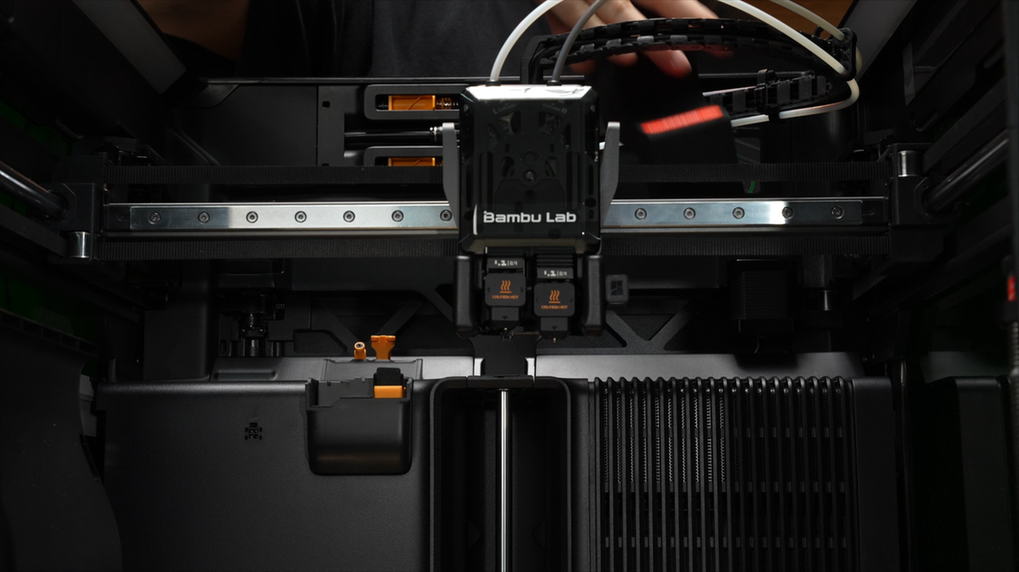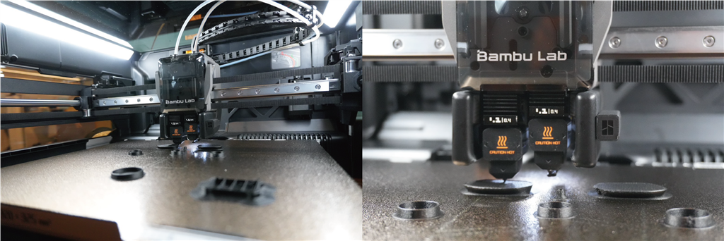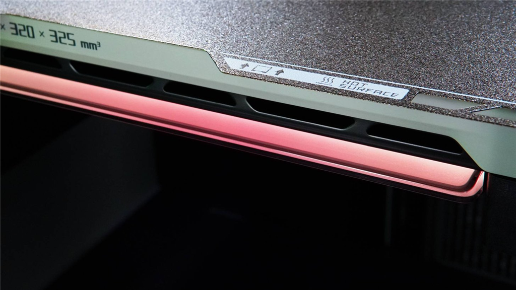 雙擠出機(jī)的兩個熱端並排放在一個列印頭中,每個熱端都可以連接到 AMS,並以高速在 350 x 320 毫米的超大列印區(qū)域內(nèi)旋轉(zhuǎn)。