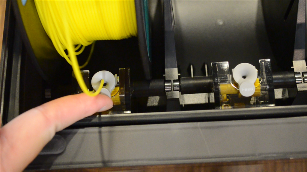 撥開白色部分的線材進(jìn)口卡榫,將線材插入一定長度即可,AMS會(huì)自動(dòng)偵測線材材質(zhì)。