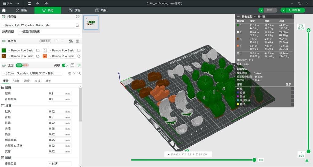 下載並安裝Bambu Studio,Bambu Studio支援3MF檔案,可以列印多色模型,支援16色列印。將要列印的檔案放進(jìn)軟體裡,設(shè)定好參數(shù),按下預(yù)覽,右上角按下導(dǎo)出切片軟體,即可存放檔案在SD卡列印。
