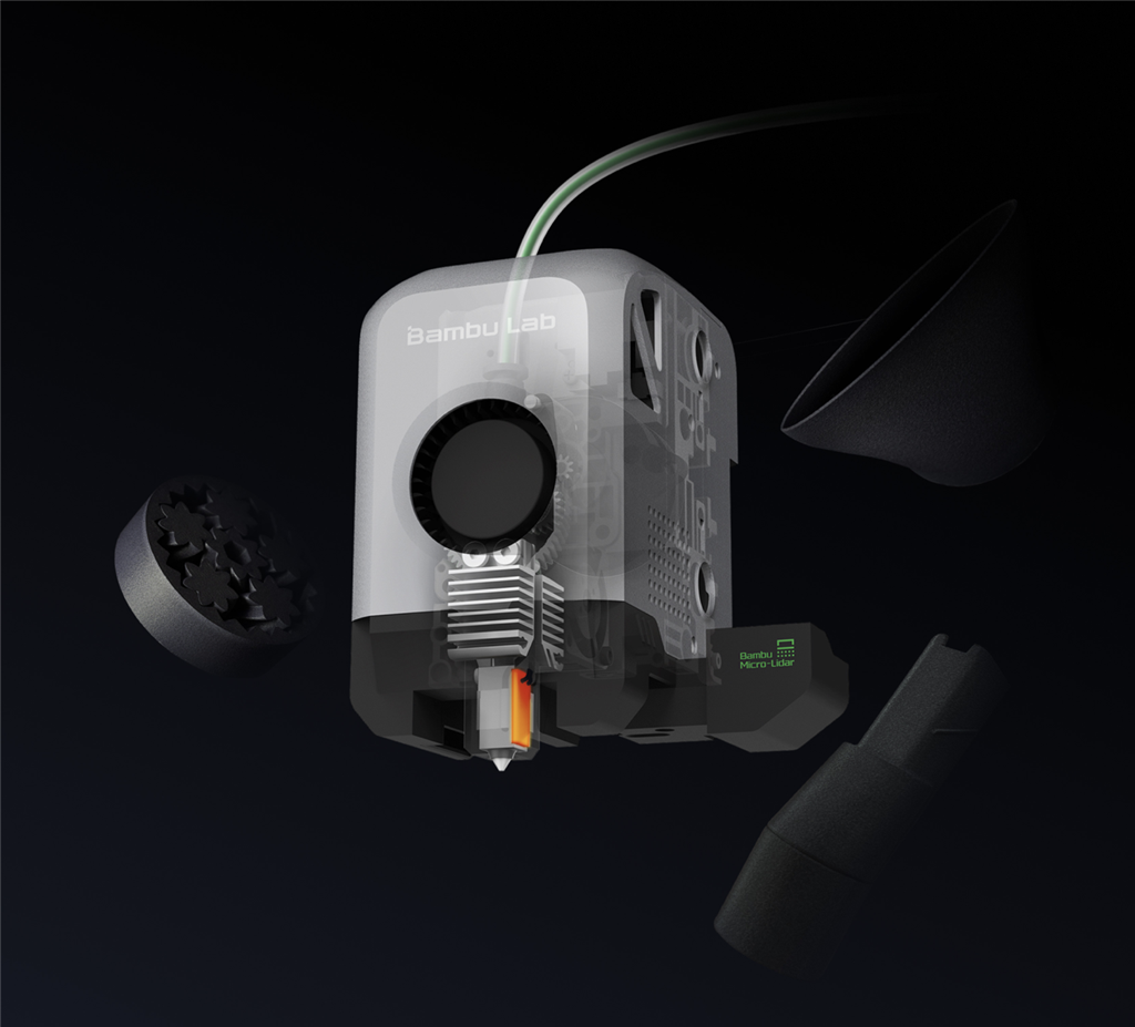 The X1E的具有高溫噴嘴的擠出器。圖片來自Bambu Lab。