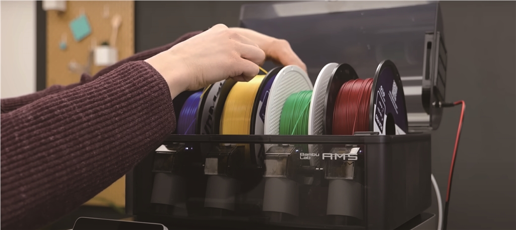 例如,使用 Bambu Lab X1,AMS 中有多軸線材,而每根線材都可以送入列印室的一個熱端。