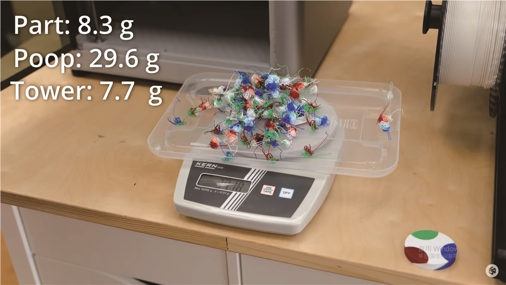 最終零件本身僅重 8.3 克,但它產生了 29.6 克“廢物”,清除塔上又產生了 7.7 克——因此,對於 8 克的打印件來說,產生了 37 克的廢物。這聽起來可能有點極端,但這就是當顏色不斷變化時這個過程的工作原理。
