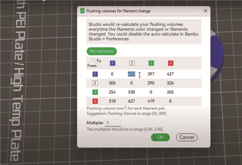 除了更改的次數之外,還有兩個因素會影響最終清除的材料量。當早期的多路復用印表機首次問世時,它們每次更換顏色都會清除相同數量的線材。