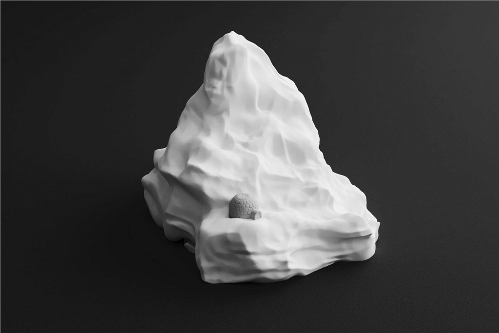 冰山模型是用FDM 3D列印製作,但冰屋模板是使用不同技術(shù)來製作。由於物件尺寸縮小以及需要獲取更多表面細(xì)節(jié),因此使用了SLA光固化3D列印。
