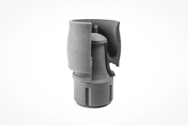 和上圖相比,此款設計的不同之處在於膨脹螺絲相對組件而言個別獨立,優點是可以在組合零件之後仍可用鑽孔或拆卸的方式將螺絲單獨移除。塑膠射出是大量生產時的常見方法,不過SLS 3D列印技術不但在開發階段可以了解產品造型,更能直接用於功能更複雜的零組件測試,因為Sinterit的雷射粉末技術對樣品原型的結構幾乎沒有任何限制。(什麼是SLS 3D列印技術?新手入門:常見3D列印技術比較及原理)