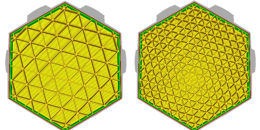 3D列印空心的物件時,內(nèi)部需要搭配填充結構來做為主要架構,在Ultimaker Cura中有不同的填充模式,可以依照需求修改密度。