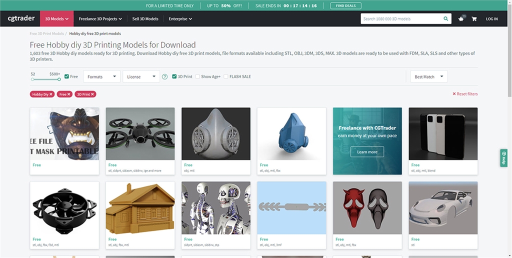 CGTrader設計平臺中,設計者提供非常多工業製圖,除了能出售、購買專業3D模型外,也有一系列可以免費下載的3D列印檔案,總共有1080萬種3D模型可以選擇;可以依照需求、透過完整的領域分類找到最適合的模型。