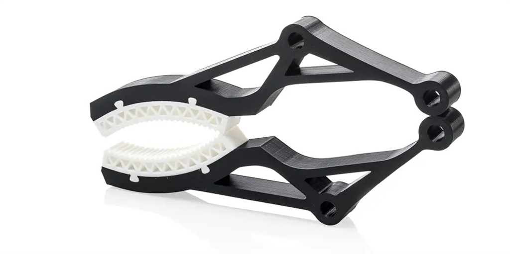 工業用的3D列印零件需要長時間承受壓力、撞擊,同時也必須保護輸送、加工的產品;以夾具為例,需要有堅固耐用的結構、附有彈性的內層,來達到最好的機械功能性,以雙噴頭3D列印來同時列印兩種材料,不但節省成本、單次列印即可完成!